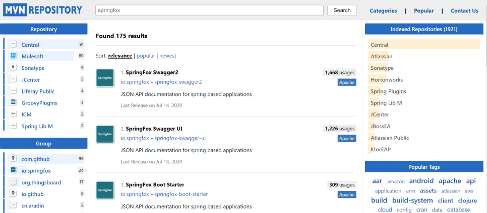 맨 위에 springFox swagger2 랑