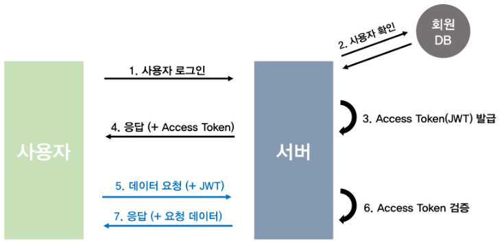 세션에서는 유저가 유저명과 비밀번호를 요청을 통해 넘겨주면 세션 DB 에 세션 ID를 생성했던 것과 달리